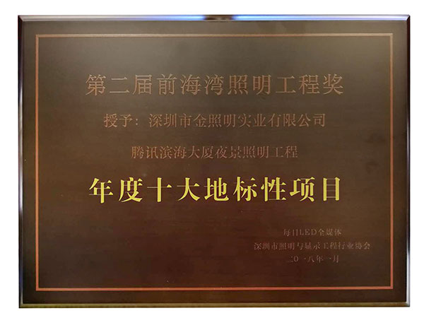 我司騰訊濱海大廈夜景照明工程榮獲2018年度“前海灣照明工程獎(jiǎng)十大地標(biāo)性項(xiàng)目”獎(jiǎng)。唐曉丹女士代表公司上臺領(lǐng)獎(jiǎng)。