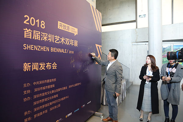 2018年1月16日由深圳市委宣傳部主辦、深圳市雛聲初引藝術(shù)服務(wù)中心承辦的“開放源”深圳藝術(shù)雙年展在深圳市羅湖美術(shù)館舉行新聞發(fā)布會(huì),隆重宣布該展將于2018年5月開展?!伴_放源”深圳藝術(shù)雙年展將在深圳灣公園、羅湖美術(shù)館兩個(gè)區(qū)域展出,橫跨南山、福田、羅湖的核心地帶,來自全球36個(gè)當(dāng)代藝術(shù)家的34個(gè)藝術(shù)作品,將與深圳市民展開一段長達(dá)近3個(gè)月的親密接觸。