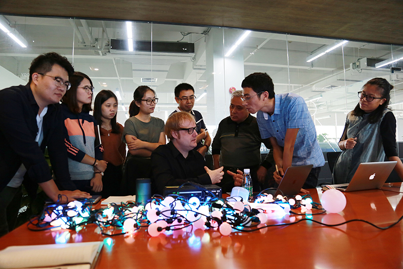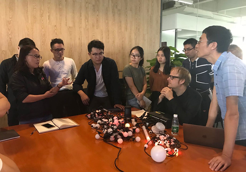 2017年9月13日,深圳大學(xué)建筑與城市規(guī)劃學(xué)院姚其博士、加拿大LimbicMedia公司創(chuàng)始人Justin Love先生一行來(lái)我司進(jìn)行技術(shù)交流與溝通,唐曉丹女士代表公司接待Mr. Justin先生一行,劉雪云女士、張超先生、鄒正文先生及部分設(shè)計(jì)師參會(huì)。會(huì)上Mr. Justin就其公司開發(fā)的智能控制系統(tǒng)進(jìn)行了詳細(xì)的介紹和演示,并展示了在美國(guó)紐約、加拿大等國(guó)家和地區(qū)的經(jīng)典案例,金照明技術(shù)和設(shè)計(jì)團(tuán)隊(duì)就相應(yīng)的技術(shù)實(shí)現(xiàn)和應(yīng)用向Mr. Justin進(jìn)行了仔細(xì)的詢問(wèn),雙方進(jìn)行了熱烈而充滿趣味的交流。