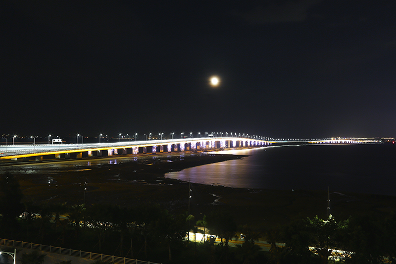 海滄大橋、集美大橋、杏林大橋、廈門大橋及翔安隧道出入口夜景亮化。海滄大橋如同璀璨的“海上明珠”夜景照明總設計師許東亮表示,“海滄大橋亮起夜景燈后,可以媲美舊金山大橋”。