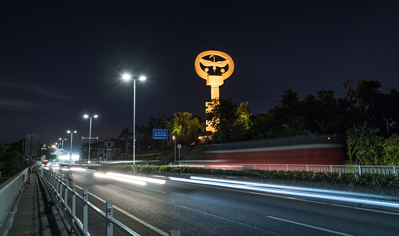 通過 LED 控制變化出五顏六色的燈光像是懸掛于海滄橋的節(jié)慶燈籠,流光溢彩、充滿喜慶,歡迎廈門的各方賓客。