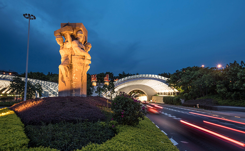 翔安海底隧道入口雕塑體現(xiàn)了廈門人民永不言棄,艱苦卓絕的奮斗精神,是廈門城市精神的一個縮影。