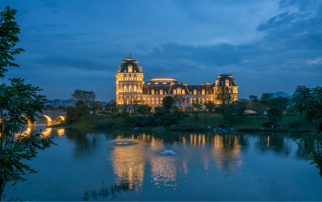 項目充分利用松湖小鎮(zhèn)優(yōu)越的水域環(huán)境、別具風格的植被綠化、援引世界聞名的歐式經(jīng)典建筑環(huán)境,營建具有平衡之道的燈光層次,整體色溫控制均衡,與建筑立面的材質(zhì)和肌理有機結(jié)合,以溫和的泛光打造燈光基調(diào)。